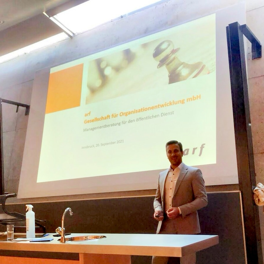 Im Rahmen der Auftaktveranstaltung am 21.09.2021 konnte sich die arf GmbH den Studierenden vorstellen, ihnen einen Einblick in das Unternehmen und die Beraterarbeit geben und damit auch die Praxis näherbringen. Zudem bestand die Möglichkeit, die Studierenden bei Einzelgesprächen und auch bei der Abschlussveranstaltung am 06.10.2021 besser kennen zu lernen, Einstiegsmöglichkeiten zu besprechen und den allgemeinen Austausch zu fördern.